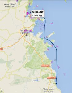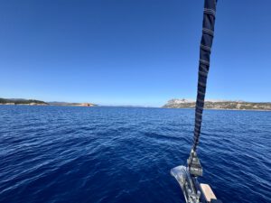 Donnerstag, 03.04.25 um 13.30 Uhr wurde zunächst der Dieseltank etwas nachgefüllt und um 14.00 Uhr wurde der Kurs 121° auf Korsika, Calvi, gesetzt. Die See war leicht bewegt und der Wind kam aus NNO, sodass „hart am Wind“ gesegelt wurde mit Unterstützung unseres „Deutz-is“. Das sonnige Wetter machte die Fahrt zusätzlich angenehm. Auch in der Nacht war die See nur leicht bewegt und der Wind sehr moderat.