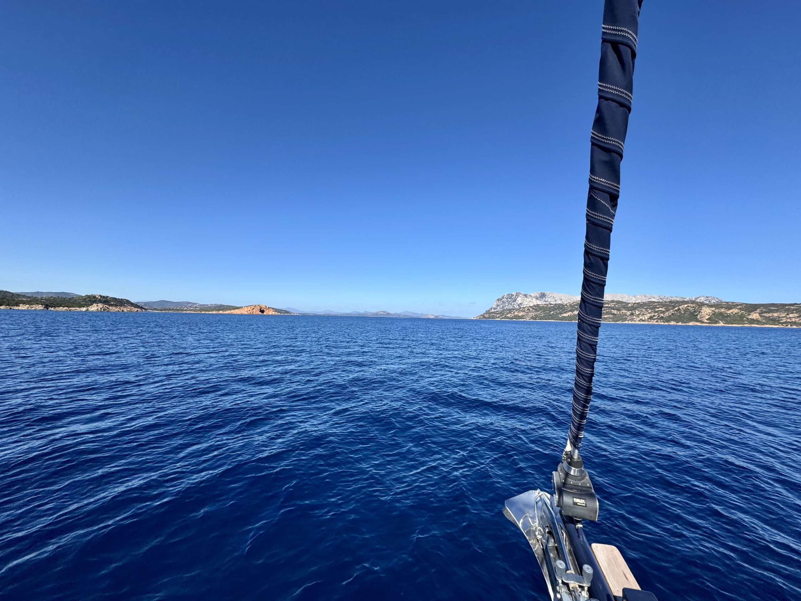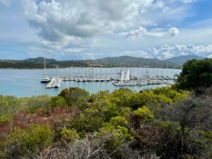 Am Mittwoch, 8.10.25 sind wir nach 17 Tagen Aufenthalt in La Caletta weiter nördlich gefahren zur Marina dei Sardi, etwas nördlich von Olbia. In Olbia war in beiden Marinas kein Liegeplatz frei. Die Fahrt von etwa 6 Std. (33 Sm), wiederum bei sonnigem Wetter und leichter Wind führte erneut an einer sehr schönen Küste vorbei.