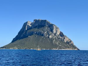 Etwas südlicher von Olbia liegt die Isola Tavolara (Tisch). Die 5Km lange Kalkinsel steigt, wenn man den Ort Porte Sao Paulo, erreicht plötzlich fast senkrecht aus dem Meer, 565m hoch. Leider war die Luft ein wenig diesig.