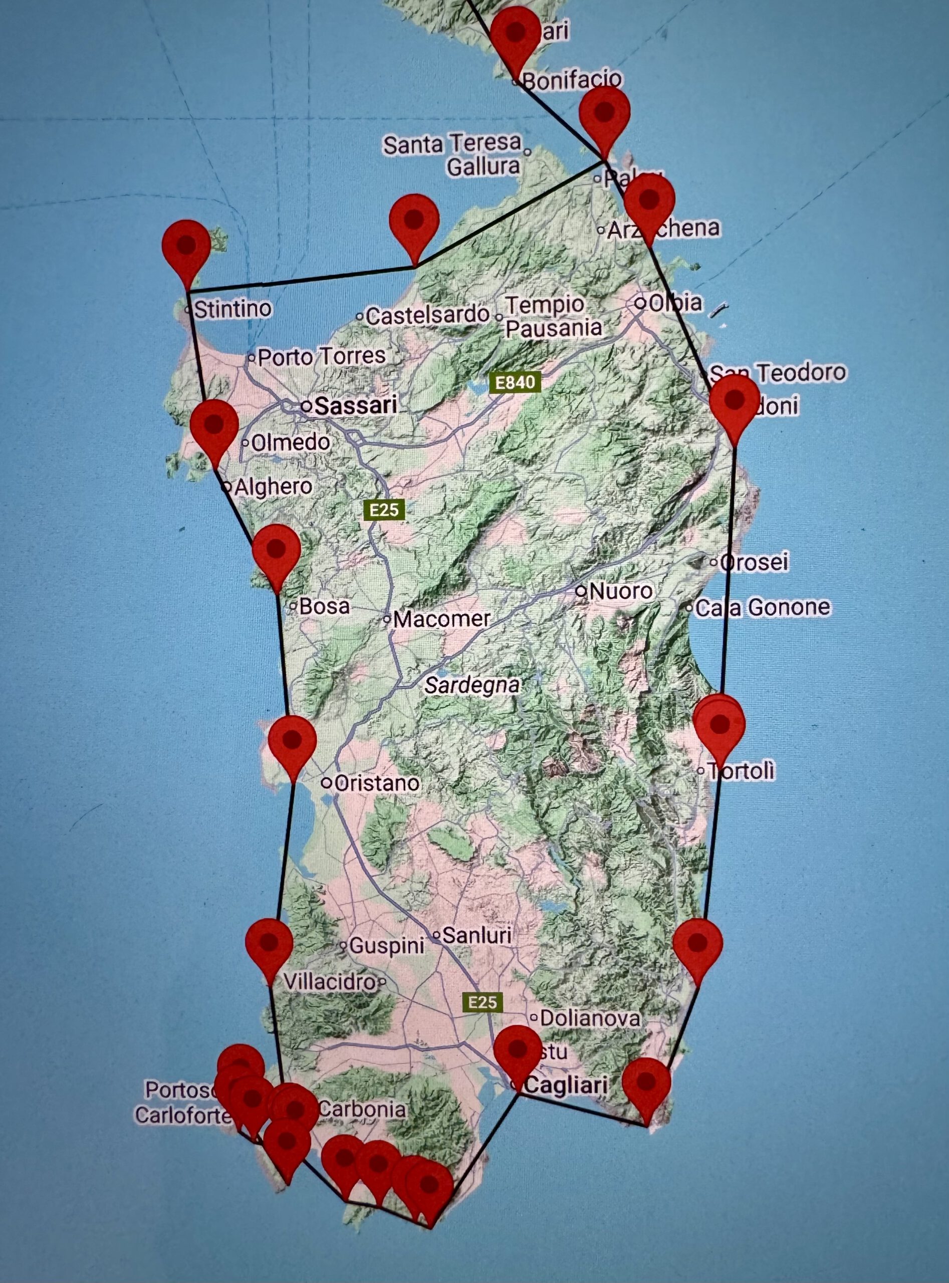 Blick von der anderen SeiteKap „Caccia“, ab hier ging es östlich zur Marina FertiliaRoute vom Ankerplatz Isola Piana nach FertiliaLiegeplatz in der Marina Fertiliazunächst bleiben wir eine Woche, aber genau wissen wir das noch nicht ……….. beste Grüße